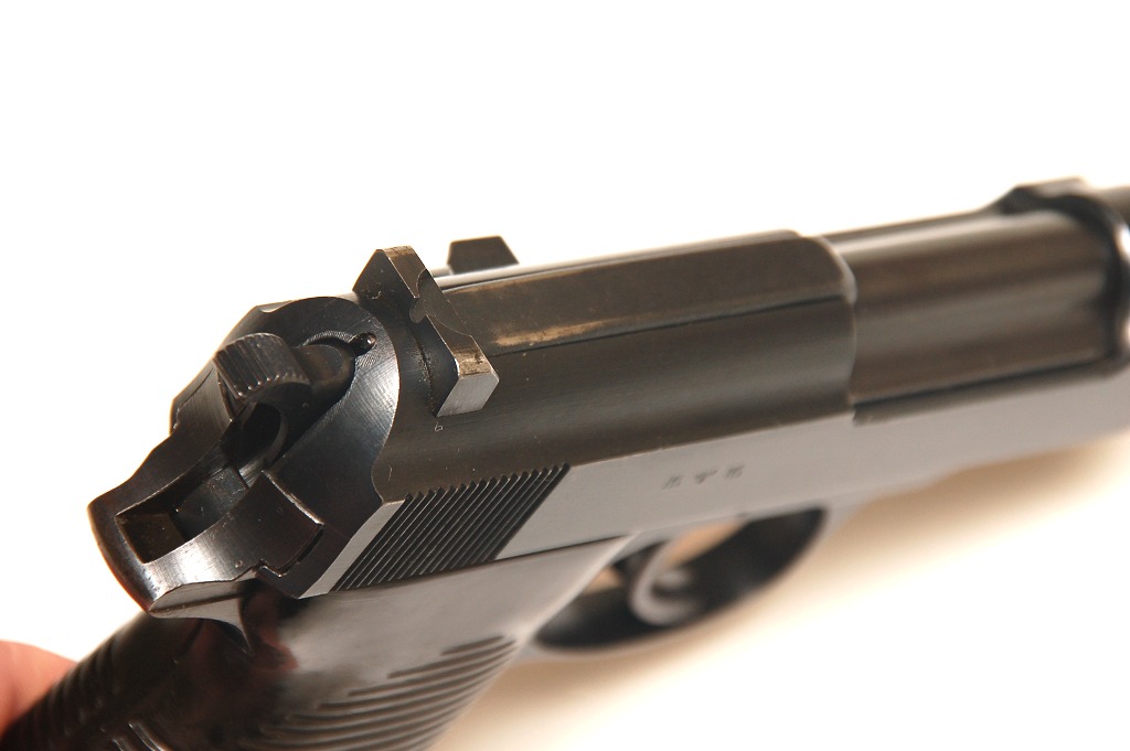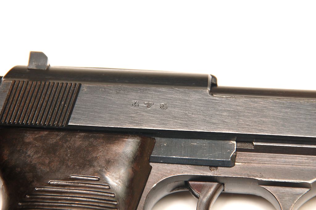 The P.38 was adopted by the Nazi Wehrmacht just before the war. It proved itself as a capable weapon on every front, and in every branch of the German armed forces during the Second World War. It is a testimony to its design that after the war, its production was continued in France on captured machinery, and, when West Germany was again allowed to bear arms, it was the P.38 that was again adopted as the new Democracies side arm. With a few modifications, the pistol saw service as the P.38, the P.1 (aluminum frame), the P.4 (shortened barrel), and the P.5 (numerous changes and shorter barrel). Production in one form or another as well as service with the Bundeswehr and Polizei units continued well into the 1990's. A fine service history which does little to allay the pistols sinister Nazi origins.